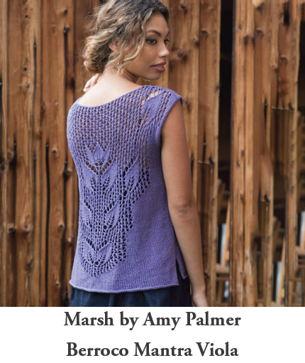Featuring a pretty eyelet rib & scoop neck, the Arga tank top by Donna Yacino is fabulous worn alone or under your favorite cardigan. Cool & airy for summer, the piece is knit with Berroco Mantra. Mantra is a DK weight, 100% silk yarn that is matte with a soft, washed hand.