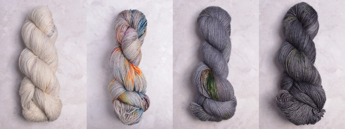 Cozy up with a new pattern by Joji Locatelli. The Spector pullover with its textured yoke & unique rib pattern is a top down pullover that uses four different colors of Madelinetosh Tosh Merino Light to create a gradient effect.