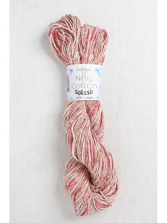 Add a splash of color to your next knit or crochet project!  Spun from soft, 100% cotton, worsted weight Nifty Cotton is a wonderful yarn for warm weather accessories & home décor pieces, as well as cute baby clothes & blankets.  Durable & easy to care for, the yarn is machine washable & may be put in the dryer with a low heat setting.  The yarn has a matte finish & also works well for knit washcloths & market bags.  Choose from the fun palette of speckled & splashed colorways.