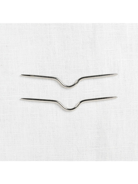 Stylishly hold & knit cable stitches with these nickel-plated steel curved cable needles from Cocoknits. Includes 2 cable needles, 3.25” (85mm) in length, size US 2 (2.5mm).