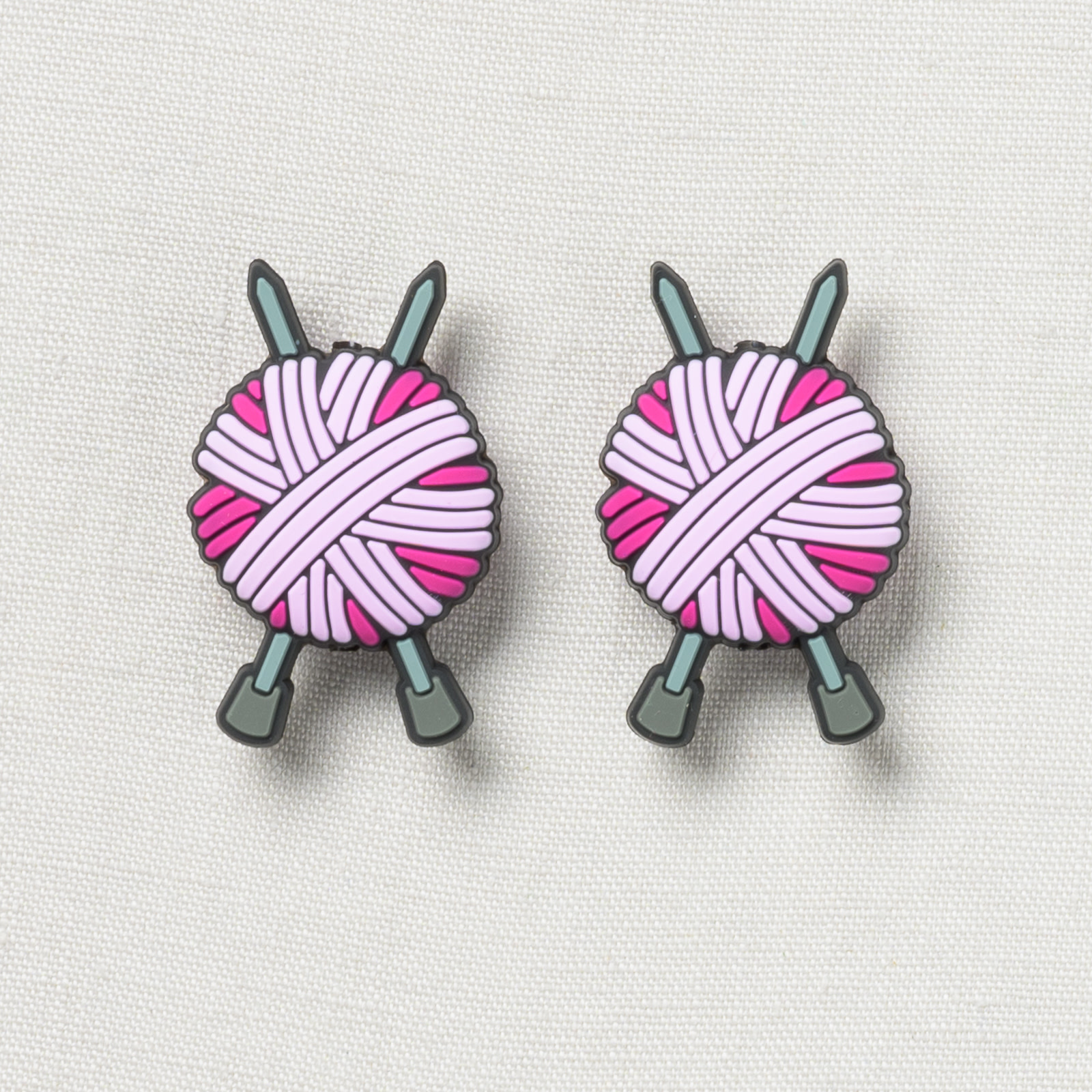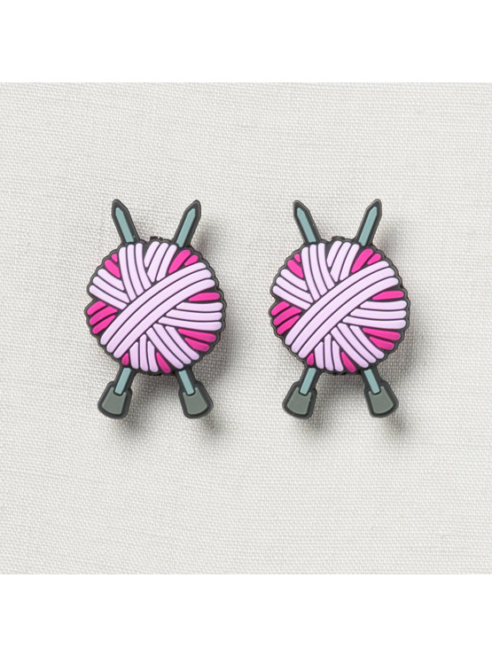 Too cute to resist!  Keep stitches safe on needles when not in use with these adorable stitch stoppers by Fox & Pine.  Crafted from smooth silicone, the stoppers simply slide onto the tips of needles to keep stitches from sliding off needles.  Each set includes two stoppers with a different hole size on each end.  This enables stoppers to accommodate sizes US 2-13.