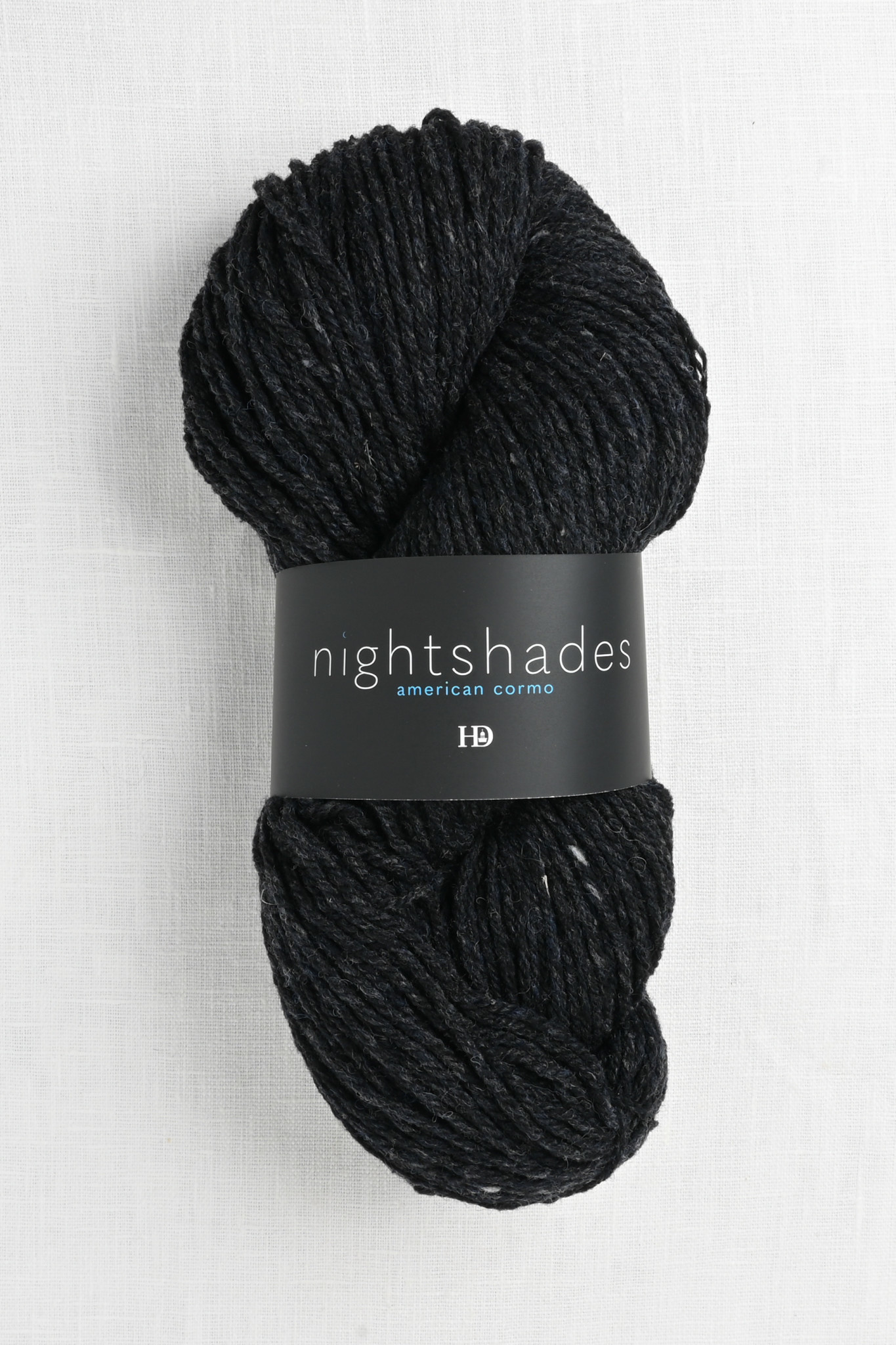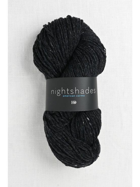 Nightshades is a unique & amazing woolen-spun yarn spun with U.S. sourced Cormo & blended wool. Light & airy, yet very warm, this DK weight yarn is exceptional for knit sweaters, cardigans & accessories. The yarn will hold shape & wear very well. Each Nightshades colorway is a shade of black marbled with a hint of color. From purple & blue to gold & magenta, the yarn knits into striking pieces that will become wardrobe favorites.