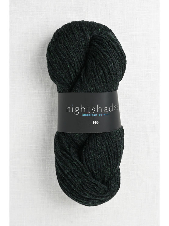 Nightshades is a unique & amazing woolen-spun yarn spun with U.S. sourced Cormo & blended wool. Light & airy, yet very warm, this DK weight yarn is exceptional for knit sweaters, cardigans & accessories. The yarn will hold shape & wear very well. Each Nightshades colorway is a shade of black marbled with a hint of color. From purple & blue to gold & magenta, the yarn knits into striking pieces that will become wardrobe favorites.
