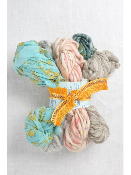 Have fun mixing & matching colors & textures to knit your own unique personal creation.  Very boho chic, the set contains mini skeins of 5 different Knit Collage yarns.  The sets are available in different color options & arrive ties with an embellished ribbon from the founder’s travels to India.  Includes one mini skein of each of the following yarns: Spun Cloud, Wildflower, Daisy Chain, Cast Away & Dreamland.