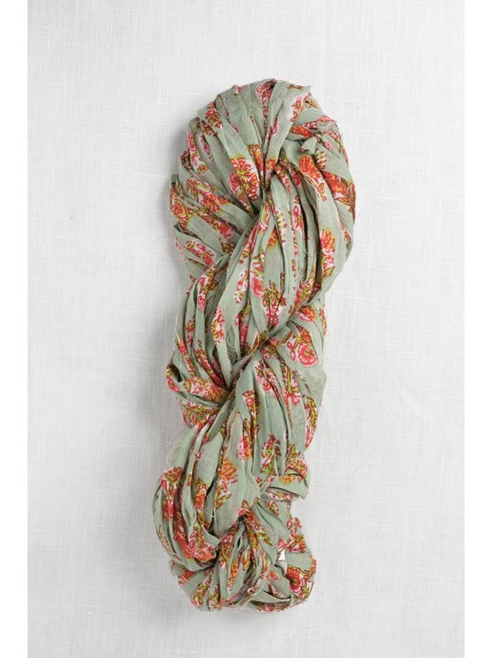 Wildflower is a very unique “yarn” in that it is hand made from strips of soft, cotton voile fabric!  The fabrics are printed in traditional Indian paisley & flower designs paired with modern colors.  The fabric is hand cut into strips & then knotted together by artisans to create each skein.  A fun choice for knit & crocheted necklaces, bracelets, market bags/baskets, & unique tops & accessories.  The fabric yarn is also fun to weave or knit into projects combined with other yarns.  It works nicely with Knit Collage Spun Cloud.