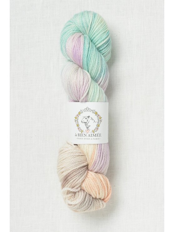 Hand dyed in Paris, France, each La Bien Aimée skein is truly a work of art.  The unique color combinations are fun to knit with & gorgeous to wear.  This soft, smooshy, plied worsted/aran weight yarn has wonderful stitch definition & a gorgeous hand.  Spun with Merino wool, the yarn delivers polished, even stitches & shows off textured stitches beautifully.  A wonderful yarn for hats, cowls & cardigans.