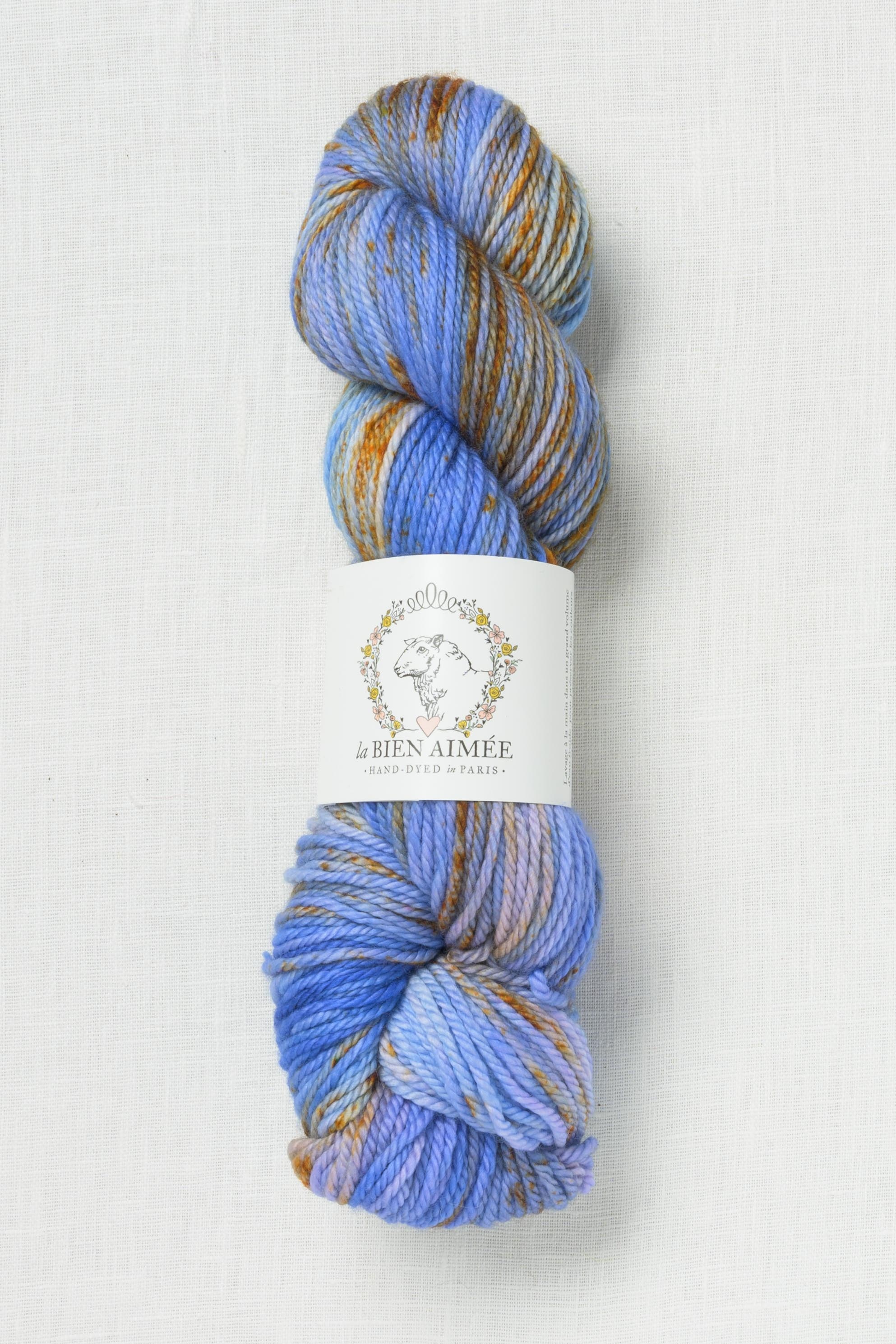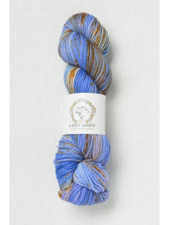 Hand dyed in Paris, France, each La Bien Aimée skein is truly a work of art.  The unique color combinations are fun to knit with & gorgeous to wear.  This soft, smooshy, plied worsted/aran weight yarn has wonderful stitch definition & a gorgeous hand.  Spun with Merino wool, the yarn delivers polished, even stitches & shows off textured stitches beautifully.  A wonderful yarn for hats, cowls & cardigans.