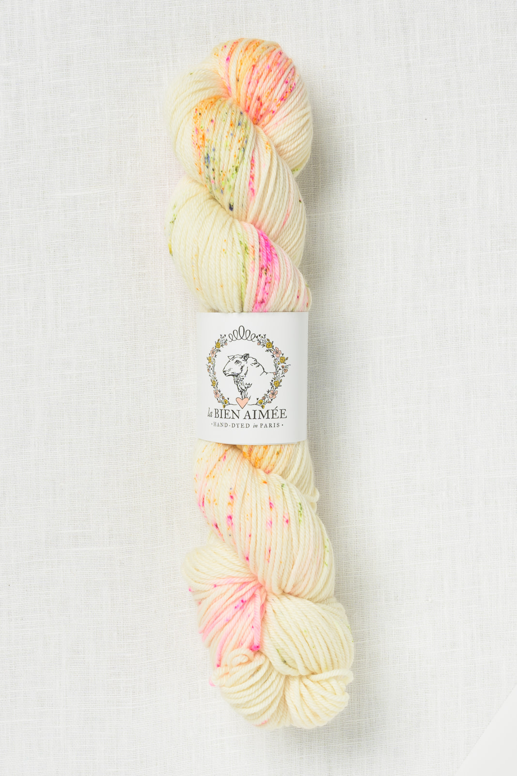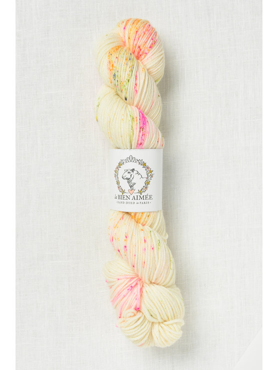 Hand dyed in Paris, France, each La Bien Aimée skein is truly a work of art.  The unique color combinations are fun to knit with & gorgeous to wear.  This soft, smooshy, plied DK weight has wonderful stitch definition & a gorgeous hand.  Spun with Merino wool, the yarn delivers polished, even stitches & shows off textured stitches beautifully.  A wonderful yarn for hats, cowls & cardigans.