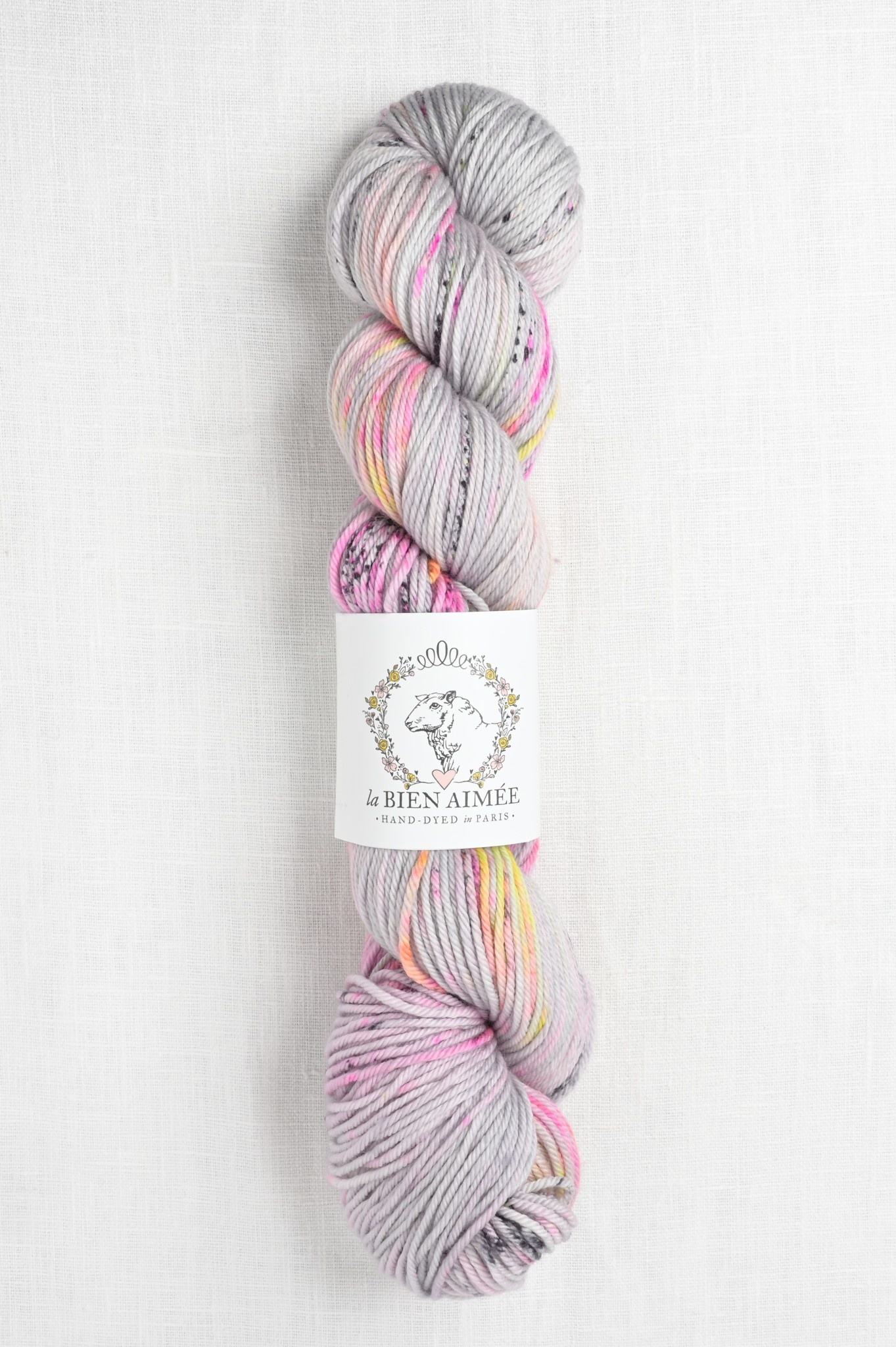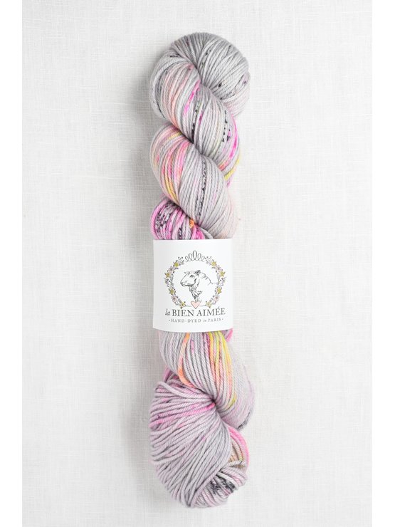 Hand dyed in Paris, France, each La Bien Aimée skein is truly a work of art.  The unique color combinations are fun to knit with & gorgeous to wear.  This soft, smooshy, plied DK weight has wonderful stitch definition & a gorgeous hand.  Spun with Merino wool, the yarn delivers polished, even stitches & shows off textured stitches beautifully.  A wonderful yarn for hats, cowls & cardigans.