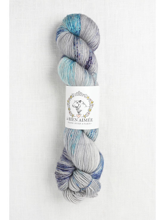Hand dyed in Paris, France, each La Bien Aimée skein is truly a work of art.  The unique color combinations are fun to knit with & gorgeous to wear.  Merino Singles have a soft hand & feel lovely against skin.  The single-ply, fingering weight yarn has a gentle halo & is ideal for knit shawls, wraps, garments & accessories.  The extensive collection of interesting tonals, speckles & variegateds are fun to combine in fades or stripes.