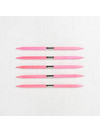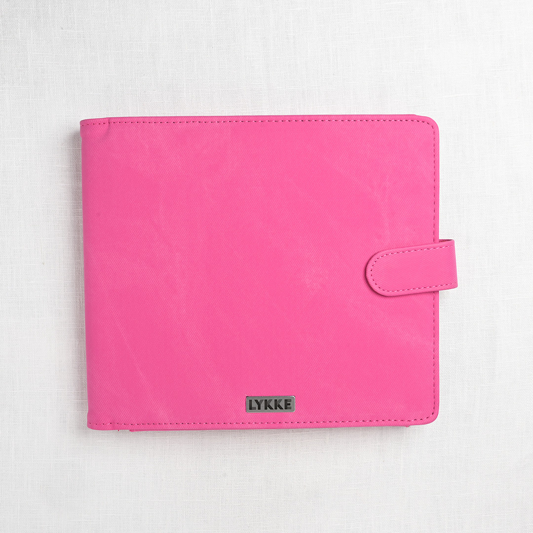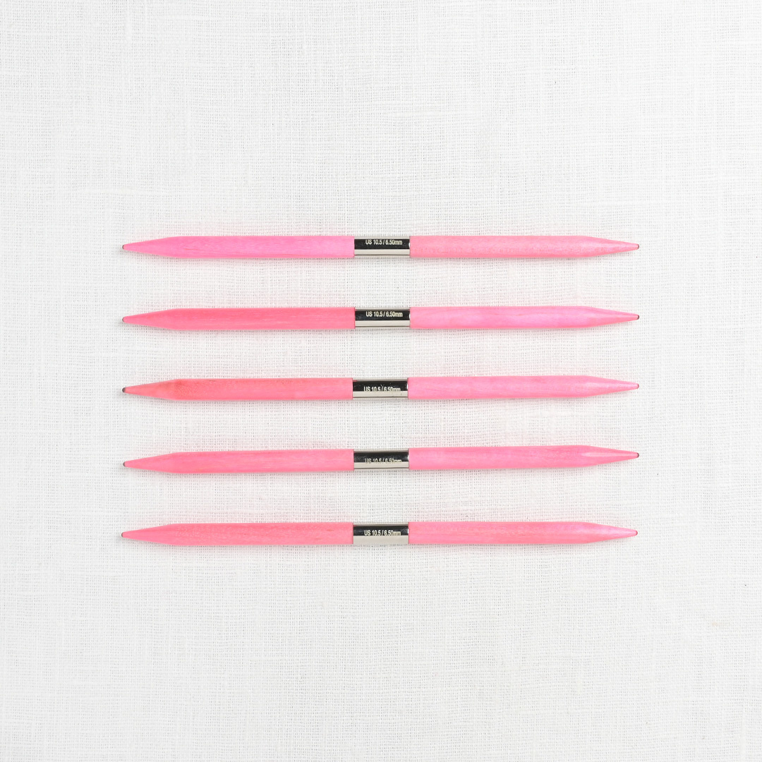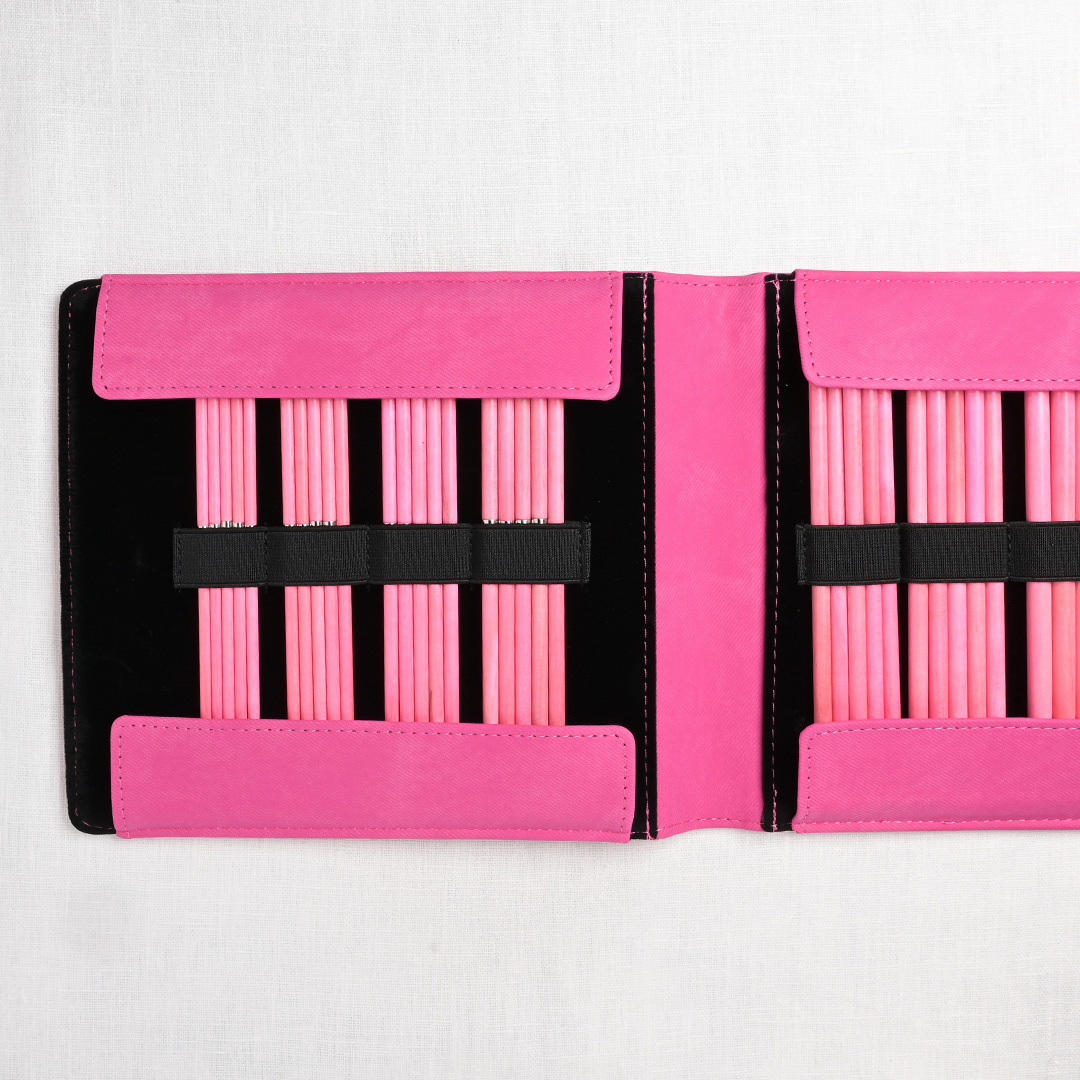 Pretty in pink! This beautiful set of pink, birchwood interchangeable needles are gorgeous & functional. Smooth & snag-free, the needles feel warm in hand. Lightweight, yet durable, the needles will provide a lifetime of knitting pleasure. The set comes in a Fuchsia Denim Case with a snap closure & has an elastic secured spot for each set of needles. Each needle is printed with the size.