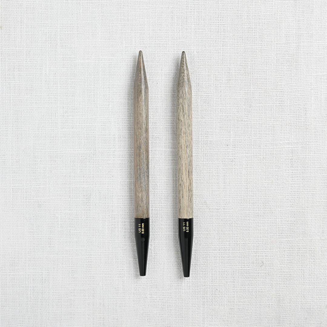 Fashion & function! This gorgeous set of interchangeable needles from Lykke comes in a gorgeous case & the needles have a smooth finish reminiscent of driftwood. Lightweight, yet durable, the needles will provide a lifetime of knitting pleasure. Set includes needle sizes US 4, 5, 6, 7, 8, 9, 10, 10.5, 11, 13, 15, 17 (3.5, 3.75, 4, 4.5, 5, 5.5, 6, 6.5, 8, 9, 10, 12mm), cords to create 2, 24” (60cm) circular needle, 2, 32” (80cm) circular needles, 1, 40” (100cm) circular needle, 2 connectors, 4 keys, & 8 stoppers.