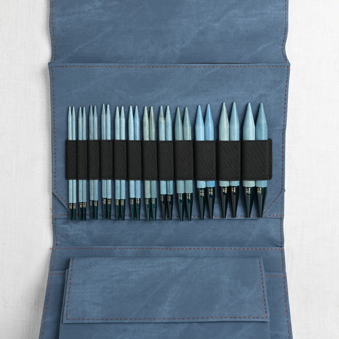 Fashion & function! This gorgeous set of interchangeable needles from Lykke comes in a gorgeous case & the needles have a smooth finish reminiscent of driftwood. Lightweight, yet durable, the needles will provide a lifetime of knitting pleasure. Set includes needle sizes US 4, 5, 6, 7, 8, 9, 10, 10.5, 11, 13, 15, 17 (3.5, 3.75, 4, 4.5, 5, 5.5, 6, 6.5, 8, 9, 10, 12mm), cords to create 2, 24” (60cm) circular needle, 2, 32” (80cm) circular needles, 1, 40” (100cm) circular needle, 2 connectors, 4 keys, & 8 stoppers.