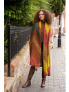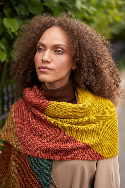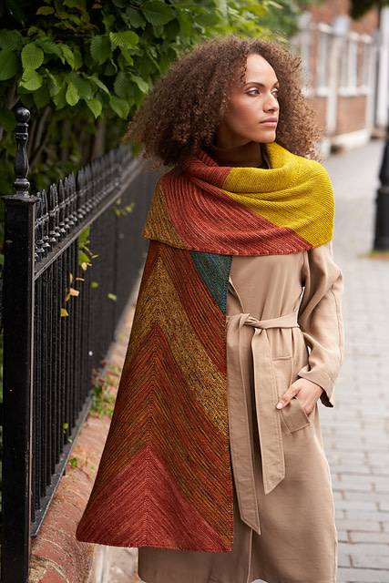 A truly showstopping knit, Rumi is an oversized wrap knit in richly hued Malabrigo Mechita. A fun slant stitch gives this piece high design, while the sophisticated color palette transitions beautifully throughout.