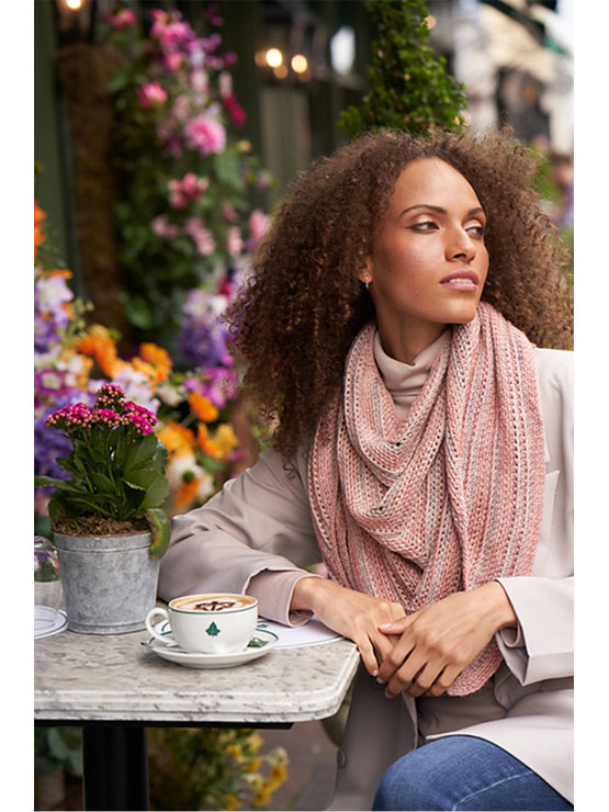 The Vibe Shawl is a crocheted piece that features luscious textures & a flattering & sophisticated pastel palette. The shawl showcases a linen stitch alternated with a textured stitch. The shawl is crocheted in two colors of soft, richly hued Malabrigo Mechita.