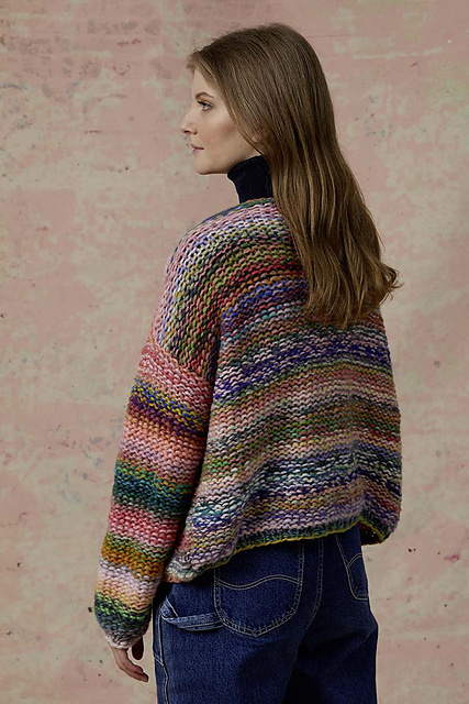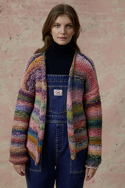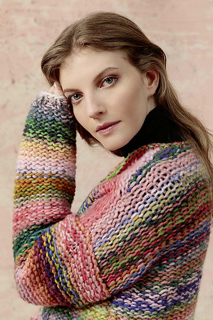 The cardigan is knitted with a double strand of yarn.