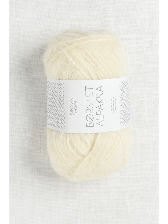 Borstet Alpakka (Brushed Alpaca) is a light, fluffy yarn spun with brushed alpaca fiber & nylon. This soft, cozy yarn has a fantastic halo & knits into luxe garments & accessories. The yarn consists of a nylon strand plied together with the alpaca to ensure that knits will maintain shaping. Simple stitch patterns such as stockinette & ribbing look best in this yarn. The yarn comes in a palette of nature inspired neutrals, as well as soft colors.