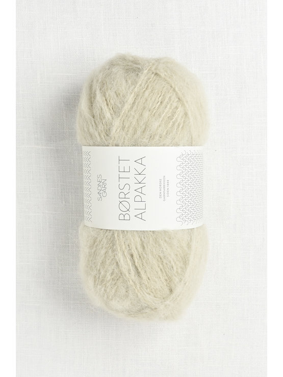 Borstet Alpakka (Brushed Alpaca) is a light, fluffy yarn spun with brushed alpaca fiber & nylon. This soft, cozy yarn has a fantastic halo & knits into luxe garments & accessories. The yarn consists of a nylon strand plied together with the alpaca to ensure that knits will maintain shaping. Simple stitch patterns such as stockinette & ribbing look best in this yarn. The yarn comes in a palette of nature inspired neutrals, as well as soft colors.