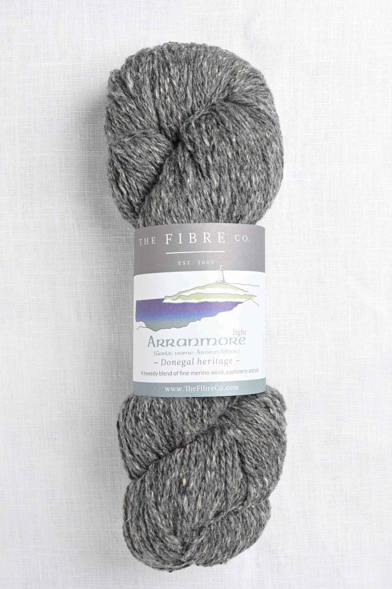 The signature blend of Merino wool, Cashmere, and silk makes Arranmore pretty much perfect in every way.  The yarn is spun in an Irish mill that traces its roots to the homespun tweed industry of 19th century County Donegal.  The soft, tweedy blend is absolutely ideal for heritage garments & cable work.  Enjoy selecting from the palette of Ireland inspired colors.