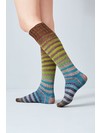 Uneek Sock is a gorgeous, jewel-tone, self-striping yarn inspired by the textiles of ancient Mesopotamia.  Spun with 75% superwash Extrafine Merino wool & 25% nylon, the yarn is soft, yet very durable.  This unique kit includes 2, pre-wound balls that will knit into a pair of matching, striped socks.  The kit includes a scannable QR code for the free Mahalle Toe-Up Sock pattern (in product photo).  The pattern requires a size US 0 & 1 double point needles or preferred method of small circumference knitting.