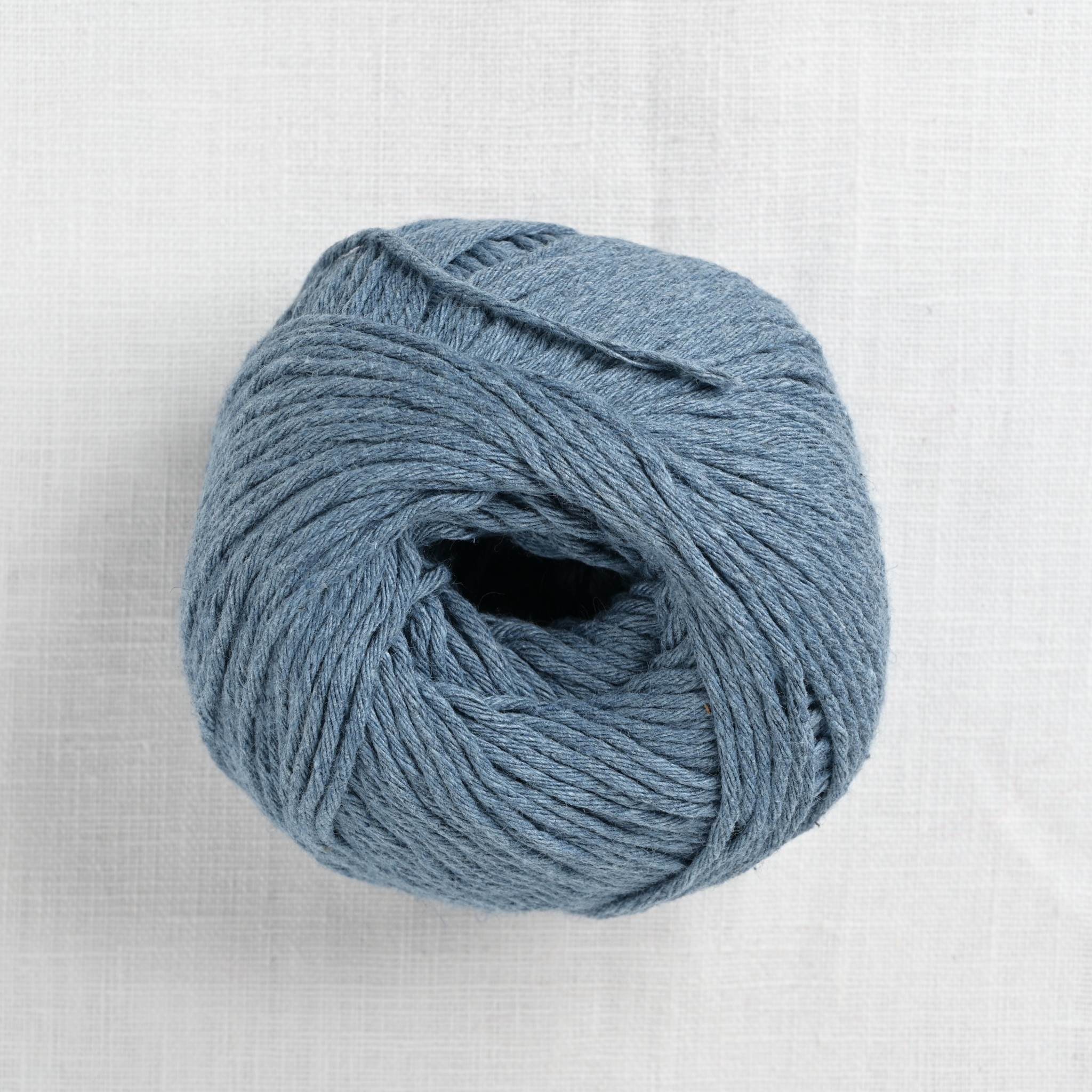 Spun from 100% recycled cotton, Billie Jean yarn is a light, smooth worsted weight yarn with beautiful drape. For every kilogram of upcycled denim, Billie Jean saves 20,000 litres of water.