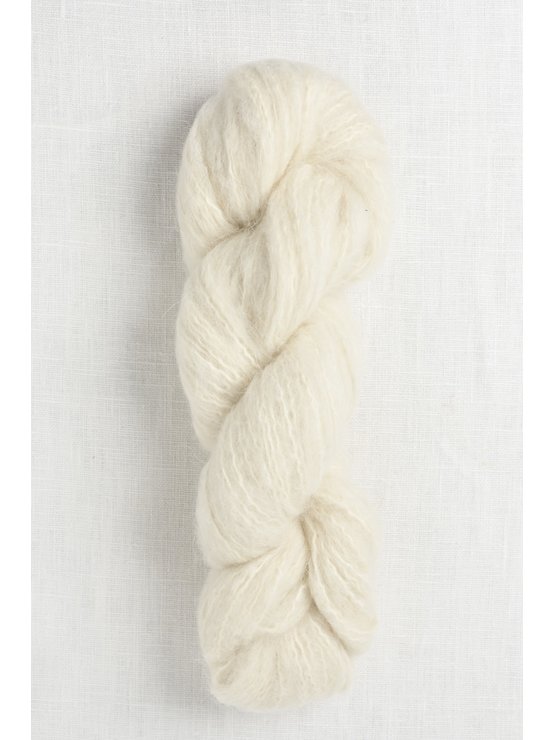 Tage has an extremely soft hand with a gorgeous halo that gives a romantic glow to garments & accessories knit with the yarn.  The chainette construction ensures that garments knit with Tage are lofty, light & airy, yet still substantial.