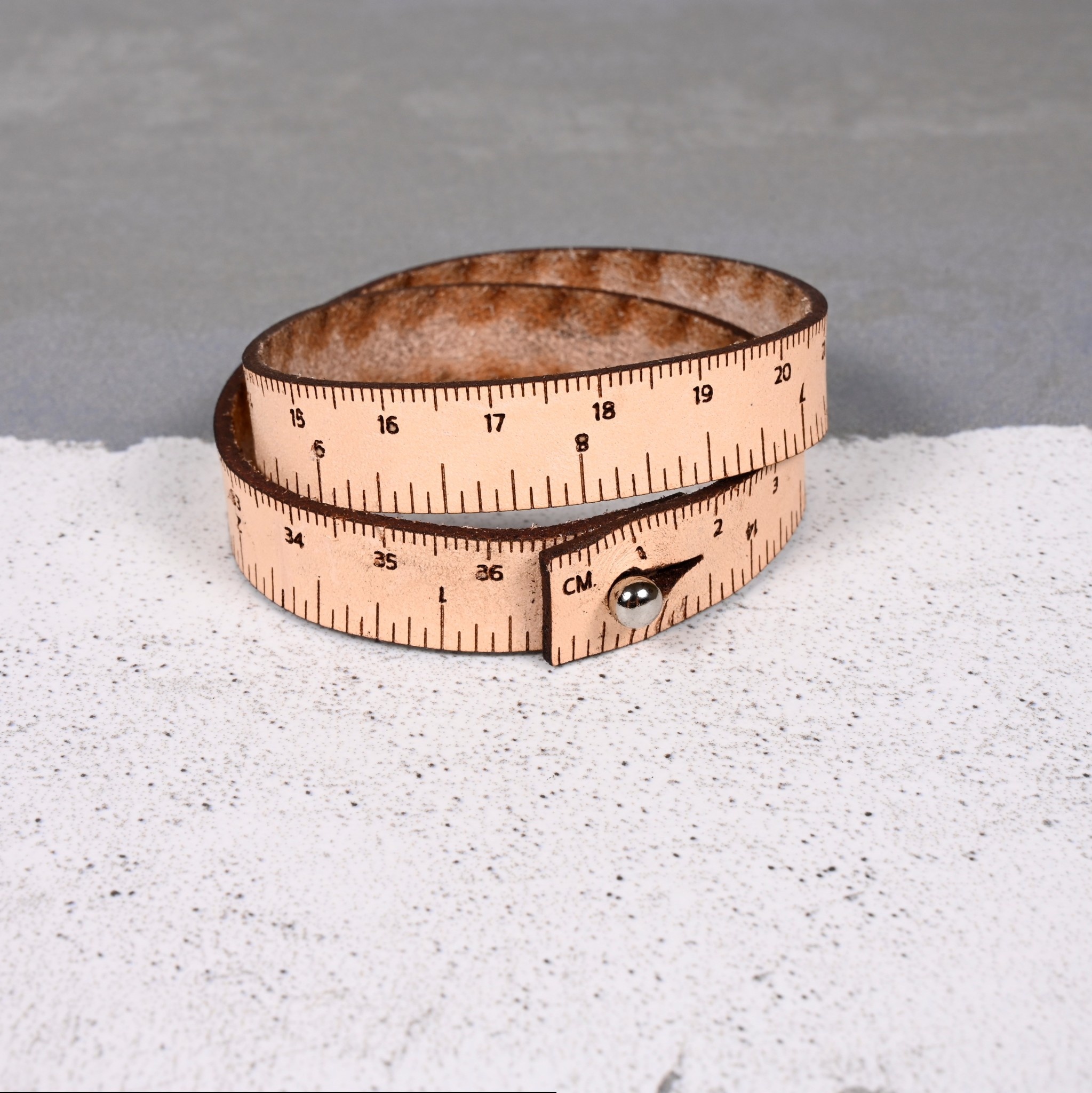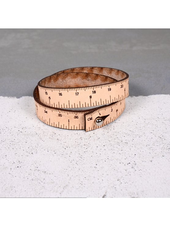Fashion or function? Why not have both! The Wrist Ruler is a handy & convenient tape measure that you can wear. Crafted from leather, each Wrist Ruler has both inch & centimeter measures the length of the wrap bracelet. Perfect for measuring gauge or anything else while on the go. Ball closure, 15” in length.